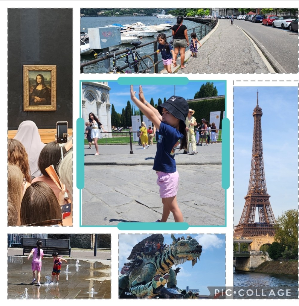 A few days ago I saw the Mona Lisa at the Louve in Paris. It was beautiful but very small. The painting on the wall opposite was about 100 times bigger. The other thing we did in Paris was to take a boat ๐ฅ๏ธ โต๏ธ ๐ค ride down the river Seine and we saw the Eifel Tower and a swan ๐ฆข on the river.